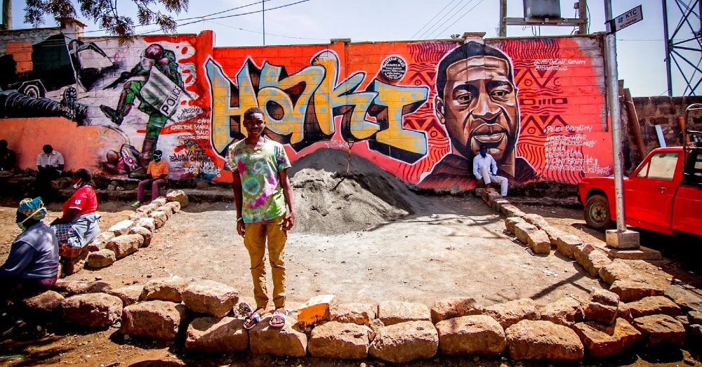 Kenya’nın başkenti Nairobi’de Detail Seven tarafından çizilmiş George Floyd’un duvar resmi.